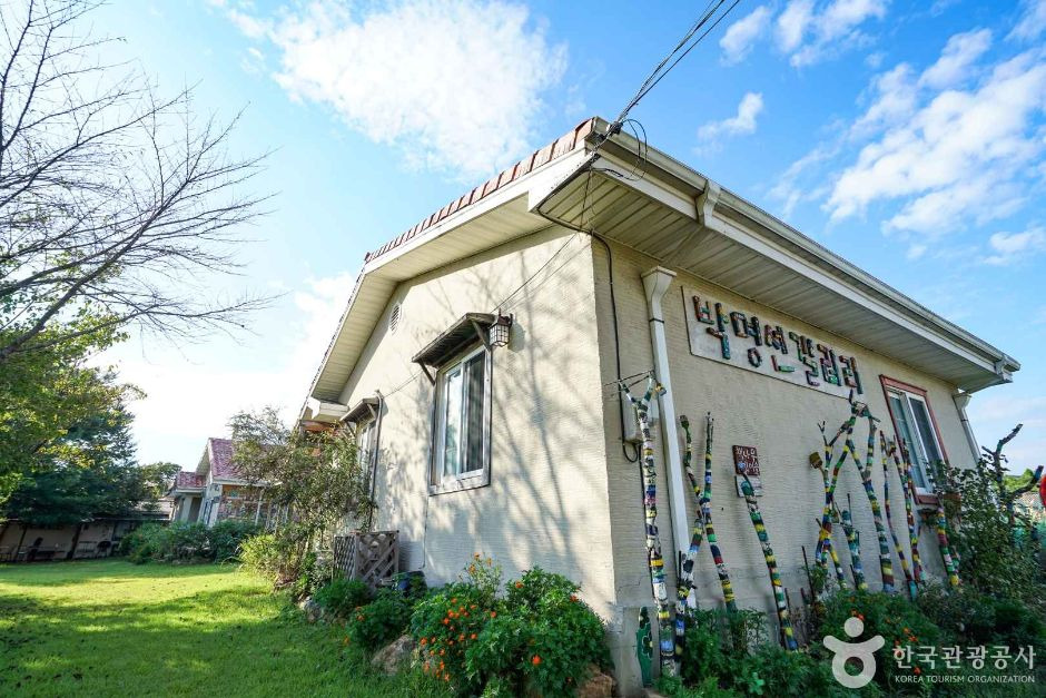 한적한 시골 마당이 있는 박명선 갤러리는 펜션으로도 운영되는데, 농약과 제초제를 사용하지 않고 가꾼 꽃들을 즐기며 차를 즐기기 좋다. 마당 한쪽에 홈 캠핑장이 있어 바비큐와 밤이면 캠핑 불멍도 가능하다. 이곳의 펜션은 독채를 오롯이 1팀이 이용하는 독립된 공간이다. 취사가 가능한 취사도구와 와인잔, 세면도구도 준비되어 있어 편안하게 낭만적인 하룻밤을 보낼 수 있다. 박명선갤러리에서는 방문객을 대상으로 미술 체험을 제공하기도 한다.