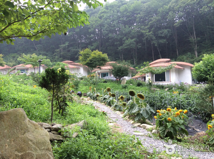 화악산 청정계곡이 펜션 앞을 흐르고 객실 창을 열면 물소리, 새소리, 다람쥐들의 발비비는 소리가 들릴 정도로 자연과 함께 조화를 이루고 있는 곳이다. 총 5개 동으로 되어 있으며 스머프펜션답게 방 이름은 가가멜, 허영이 등의 스머프 이름으로 되어 있다. 취사를 할 수 있게 주방과 취사도구도 준비되어 있다. 펜션 앞마당엔 계곡이 있어 시원한 물놀이를 즐길 수 있으며 펜션 주위로 꽃들을 심어 펜션을 더욱 아름답게 만들어 놓았다. 또한 비가 오나 눈이 오나 언제든지 바비큐를 즐길 수 있는 시설이 있다.