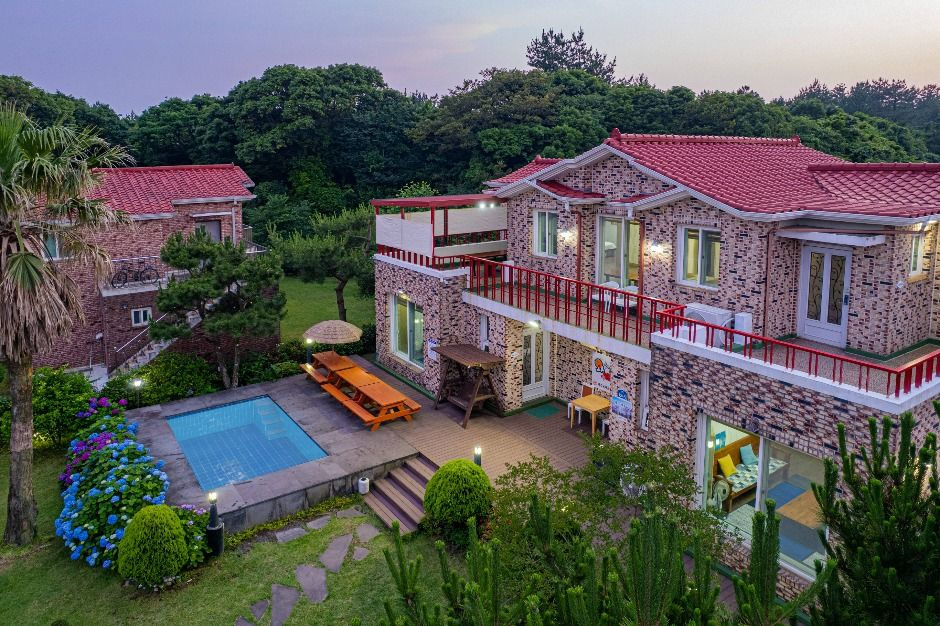 객실 전체에 커다란 유리창과 자연광을 가득 머금은 테라스에서 넓은 잔디와 야자수 나무 등 제주도에서만 볼 수 있는 이색적으로 멋진 야외 전망을 볼 수 있다. 개별 수영장이 있어 어린이들이 물놀이할 수 있고, 그네가 있어 부모님과 또는 부부나 자녀들과 그네를 밀어주며 못다 한 이야기를 나눌 수 있고, 바비큐를 즐기실 수도 있다. 조용하고 쾌적하며, 무엇보다도 맑은 공기와 새소리에 평안과 행복을 주는 진정한 힐링을 할 수 있는 펜션이다.