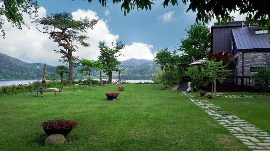 달강은 ‘달 그리고 강’이라는 서정적인 이름을 가진 펜션이다. 진양호에 비친 달이 너무 아름다워 펜션 이름을 달강으로 했다고 한다. 처음에는 카페로 시작했다가 점차 펜션 건물을 지으면서 어느덧 총 10개의 객실을 갖춘 규모 있는 펜션으로 변모하여 오늘에 이르렀다. 이름에서 느껴지듯 자연친화적인 펜션을 표방하였다. 100% 순수 황토와 소나무를 사용한 것도 그 이유다. 황토가 신진대사를 원활하게 하고 만성피로 해소 등에 효과적인 것은 널리 알려진 사실. 피로가 심한 도시인들이라면 특히 반가워할 만하다. 여기에 누구나 이곳을 한눈에 반하게 만드는 것이 바로 호숫가에 조성된 산책로다. 이후 이것을 더욱 확대하여 펜션을 한 바퀴 에두르는 둘레길로 만들 예정이라고 한다. 아늑한 호수를 유유히 산책을 즐기고 저녁에는 황토방에서 꿀 같은 단잠을 즐기는 100% 휴식이라면 그 어느 곳도 부럽지 않을 듯하다. 규모가 큰 만큼 여러 가지 즐길 거리도 풍부하다. 우선 족구장과 작은 골프 연습장이 마련되어 있고 펜션 자체가 정원이라고 해도 될 만큼 꽃과 나무가 많다. 객실별로 바비큐 시설이 마련되었고 온실에선 분재를 감상할 수 있으며 자전거를 타고 진양호를 만끽할 수도 있다. 잔디밭에 마련된 야외무대는 단체손님들도 사용 가능하다. 객실은 깨끗하게 관리되며 수련, 물망초, 진달래, 들국화, 봉선화, 수선화 객실은 침실이 2층에 따로 있어 편안한 분위기를 더한다.