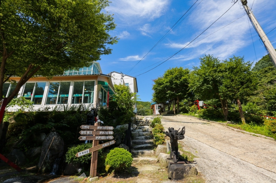 - 팬션 내 카페 - 트램펄린 - 족구장 - 골프연습장 - 그네 - 미끄럼틀 - 시소 - 등산로