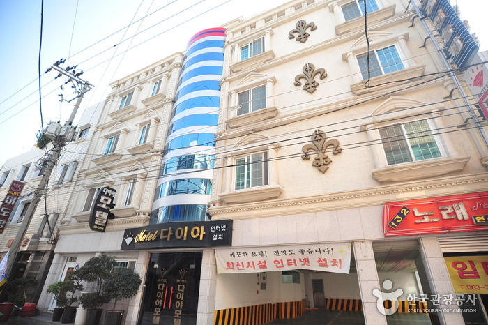 다이아모텔은 여수여객선터미널에서 걸어서 3분 거리, 여수항과 여수역에서는 차로 5분 거리여서 교통이 편리하다. 돌산대교, 하멜등대, 자산공원, 오동도 등 관광지와 가까운데 바다를 보며 천천히 거닐기 좋다. 방은 일반적인 모텔에 필요한 시설을 두루 갖추었고 화분과 도자기로 운치를 더했다. 방마다 설치된 공기청정기는 공기를 항상 깨끗하게 정화한다. 각 객실에서는 HD급 채널 100개 이상 시청 가능하며 초고속 와이파이를 이용할 수 있다.