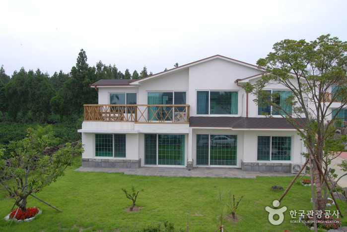 JJ하우스는 친환경소재인 천연옥을 원석상태로 가공하여 건축자재로 사용하였으며 내벽과 외벽에도 옥을 분말로 만들어 마감한 친환경 건강펜션이다. 중문관광단지, 산방산, 마라도, 중문해수욕장, 여미지, 천지연폭포, 각종 박물관 등이 10km 이내에 있어 접근성이 뛰어나다.