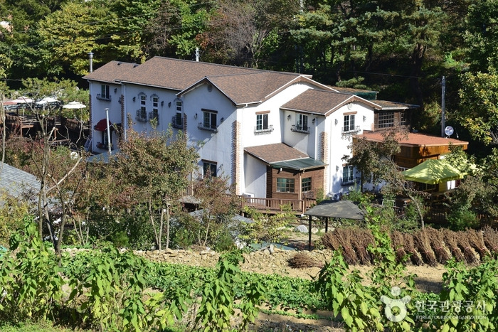 예쁜 객실의 고급스러운 인테리어로 꾸며져 있으며 호텔과 같이 청결한 서비스를 받을 수 있고 다양한 즐길 거리가 있는 편안한 쉼터이다. 게다가 자연을 풍경 삼아 차 한 잔의 여유를 누릴 수 있는 카페도 있고, 한여름에는 더위를 날려버릴 수 있는 수영장도 마련해 놓았다. 야간 조명에도 신경을 써서 한 것 분위기 있고 로맨틱한 느낌을 받을 수 있다. 아로마 초의 은은한 향과 소품들의 부드러운 느낌이 조화를 이루어 여유로움을 더해준다. 객실 내부에 와인잔도 준비해놓고 있어 펜션 지기의 섬세함을 느낄 수 있다. 객실은 각기 색깔 있게 꾸며놓아 어른들이나 아이들도 모두 즐겁게 쉬다 갈 수 있는 곳이다.