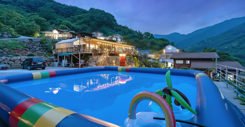 - 객실소개 : 복층, 식탁, 쇼파, 객실앞텐트, 개별바비큐