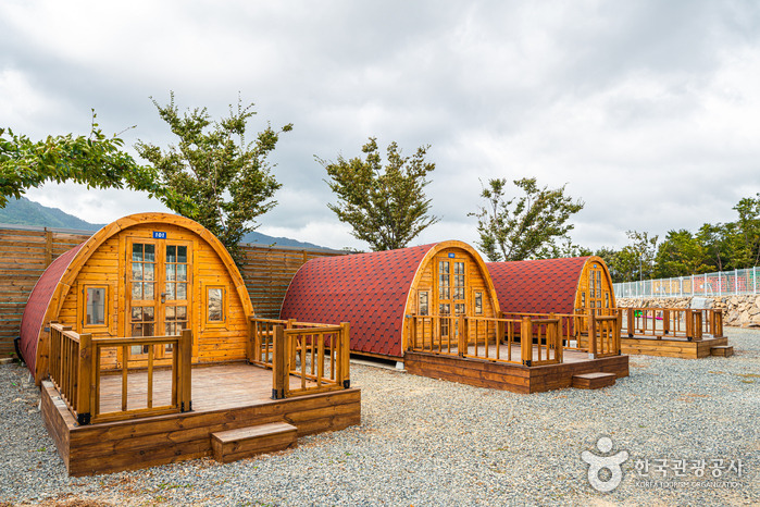 캠핑장은 카라반과 야영장으로 구성되어 있고 계단식 사이트로 되어 있다. 꼭대기 층에 위치한 편의시설에는 체험방과 개수대가 있는데, 체험방에서는 저녁식사 후 아이들에게 영화를 상영해준다. 캠핑장비가 없는 가족은 카라반 이용도 좋은데, 카라반 내부는 2층 침대, 에어컨, 히터, 냉장고, 전기밥솥, 전자레인지, 가스레인지, 싱크대, 식기건조기, 6인 기준 식기 및 수저 등이 준비되어 있고 화장실과 세면대도 같이 있어 편리하다. 카라반 옆으로 주차가 가능해 편리하며, 몽골텐트와 원목테이블, 해먹이 설치되어 있어 편하게 지낼 수 있다. 화장실과 샤워장은 깔끔하고 깨끗하다. 여름에는 초등학생 수영장과 유아용 원형풀장이 따로 있어 안전하게 물놀이도 할 수 있으며, 저수지에서 낚시체험도 할 수 있다.