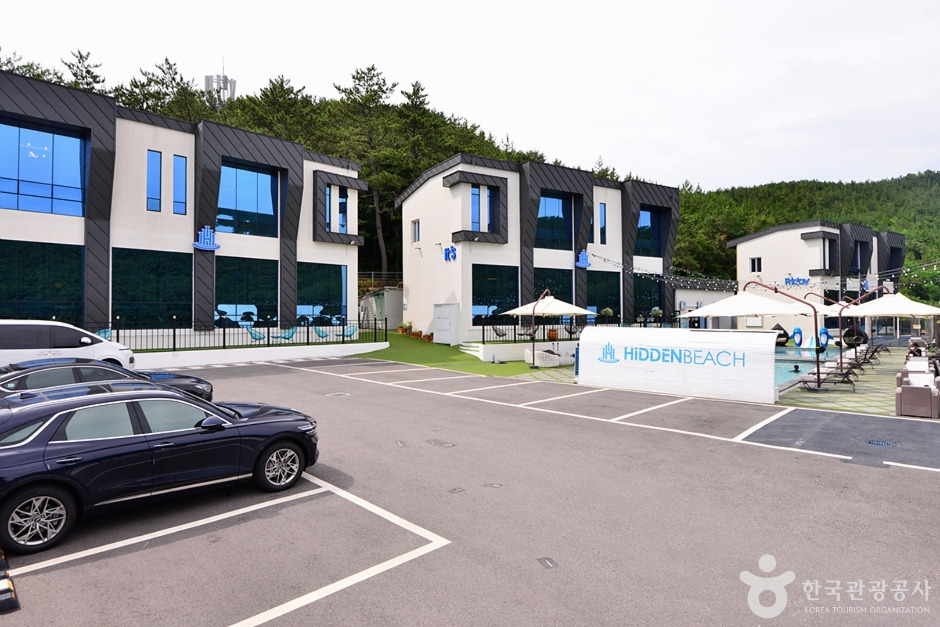 히든비치리조트는 여수의 아름다운 푸른 바다를 바라보며 사계절 25m 대형 온수풀에서 즐거움과 힐링을 체험할 수 있으며, 프라이빗한 룸안에서 편안한 바비큐를 즐길 수 있는 곳이다. 복층구조로 최대 수용인원 10인까지 가능한 객실이 있어 가족 모임이나 친구 모임을 갖기 좋다. 푸른 산 경치와 어우러지는 수영장 주변의 하얀 파라솔과 비치 베드가 이국적인 분위기를 연출하며 밤이 되면 수영장과 리조트 주변으로 조명이 켜지고 밤하늘을 즐기며 물놀이를 즐길 수 있다.