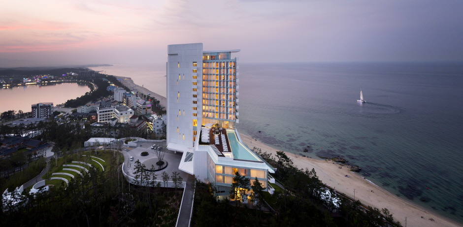한옥 스위트인 호안재와 일반객실로 구성되어 있으며 대부분의 객실이 바다 한가운데 서 있는 듯한 탁월한 오션뷰를 보유하고 있다. 지역 최초로 국내 최고 등급인 5성 호텔로 선정될 만큼 특별한 시설과 섬세한 서비스를 제공하고 있으며 세계적인 건축가 리처드 마이어가 설계에 참여한 친환경 호텔로도 잘 알려져 있다.